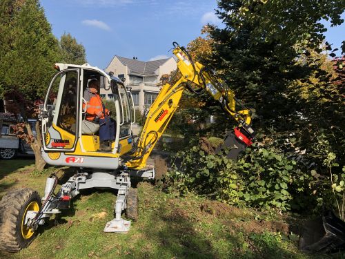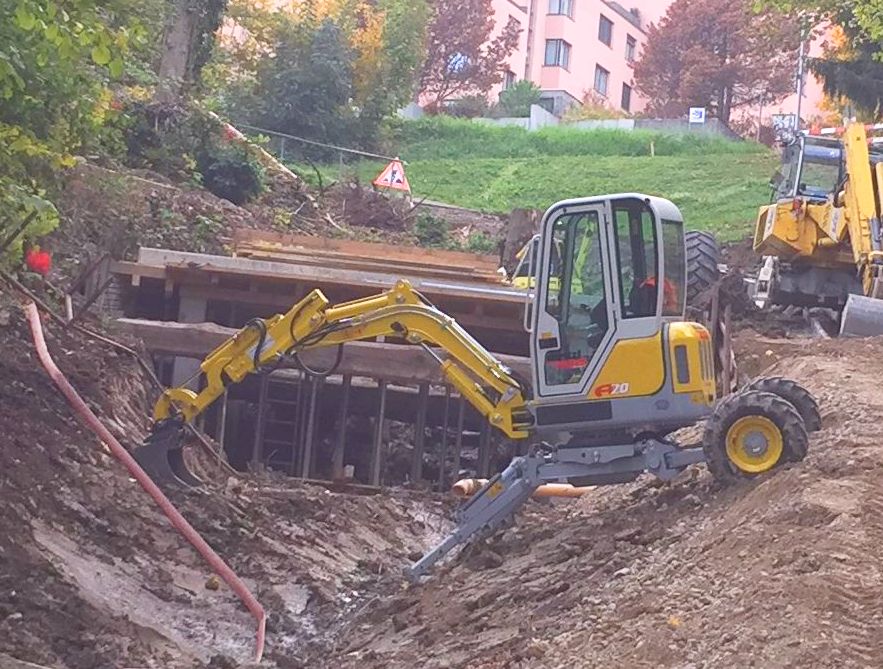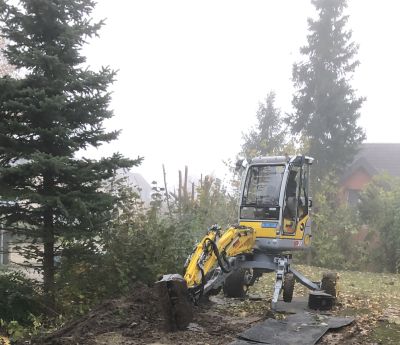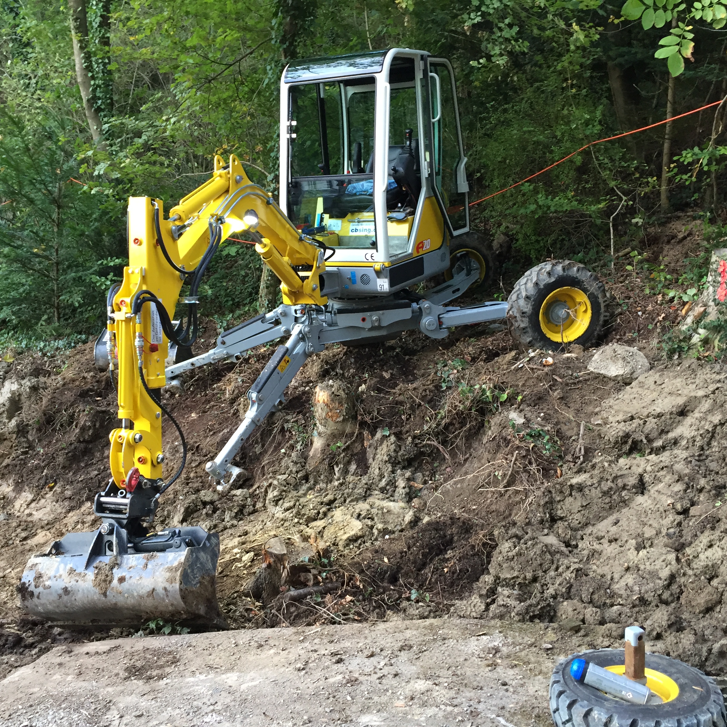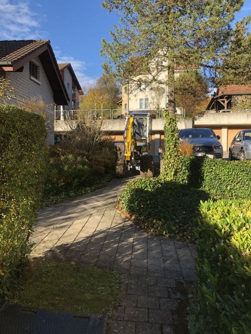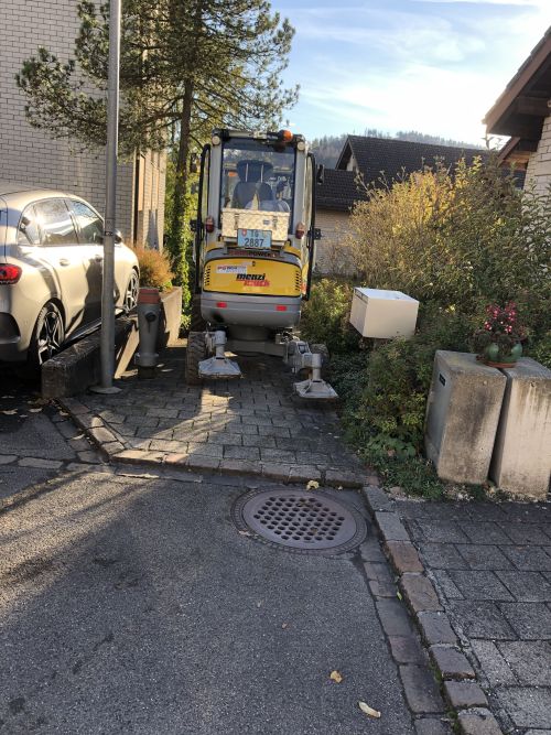 Wir können Ihnen mit der optimalsten Maschine, für enge Verhältnisse, dem 2,5to Schreitbagger Menzi Muck, dienen