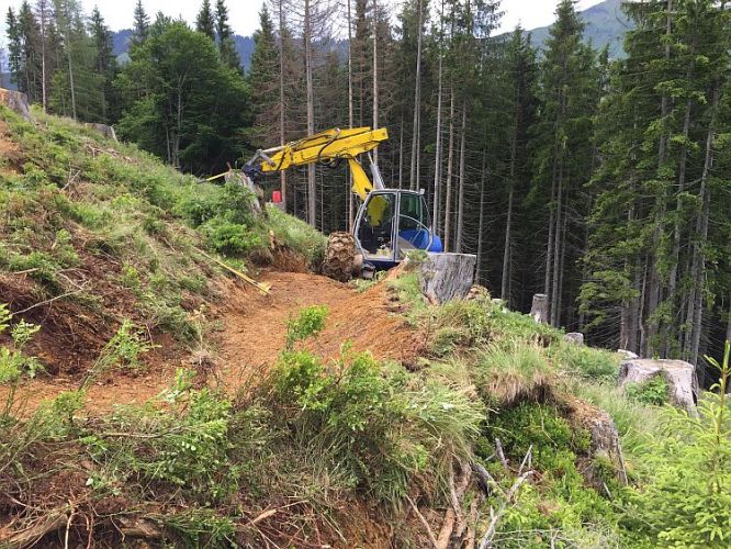 Unsere Erfahrung beim mulchen, neuerstellung von Wanderwegen oder Biketrail ist ihr Vorteil. Material welches beim Anlegen des Weges anfällt wird gekonnt vor Ort eingesetzt.